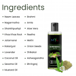 BRAHMI, AMLA, ALOE VERA, REETHA, METHI, ONION SEEDS , SHIKAKAI, ASHWAGANDHA, BHRINGRAJ, NEEM LEAVES, NAGARMOTHA, SHANKHPUSHPI, KHAS KHAS ROOT, JATAMANSHI, RATANJYOT, LAVENDER, COCONUT OIL, SESAME OIL & MUSTARD OIL.